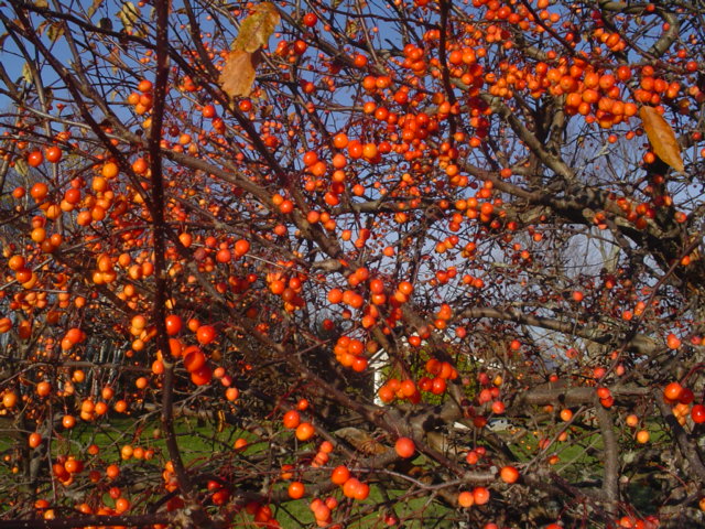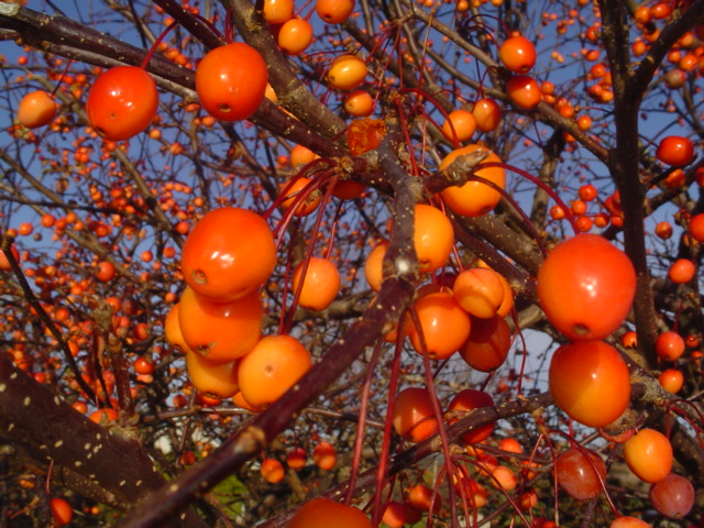 The birds do not eat these cherries until becoming very hungry in the late winter